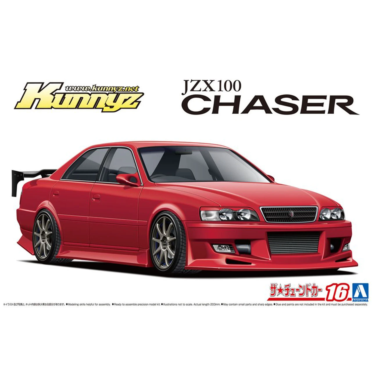 Aoshima’s model kit of the Kunny’z JZX100 1998 Toyota Chaser Tourer V is loaded with custom parts! Includes: