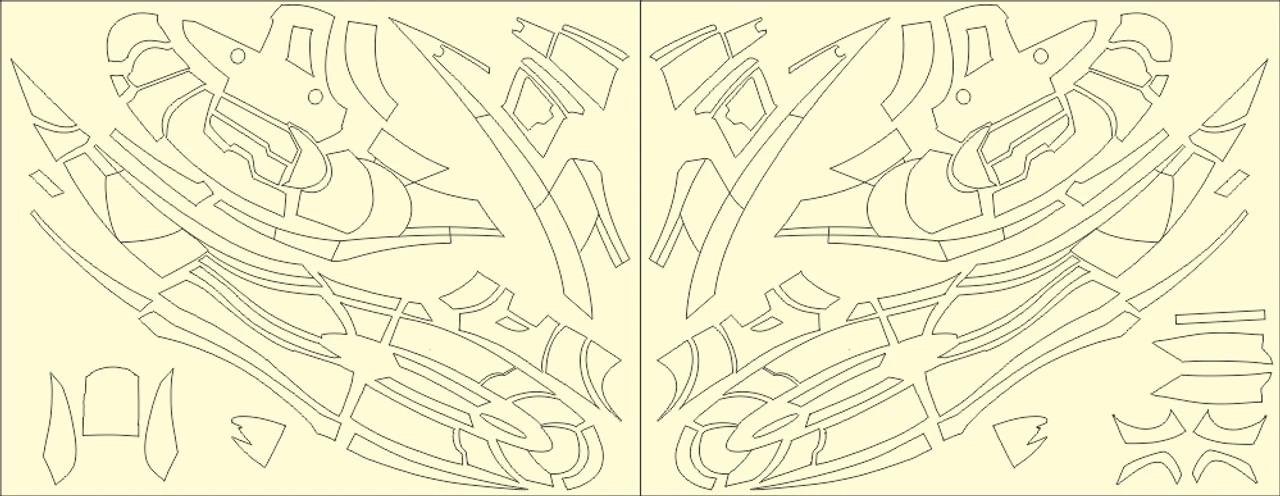 These vinyl painting masks are for the Moebius Cylon Raider featured in the new BSG series. These self adhesive templates allow you to paint the correct paneling scheme to your model kit.