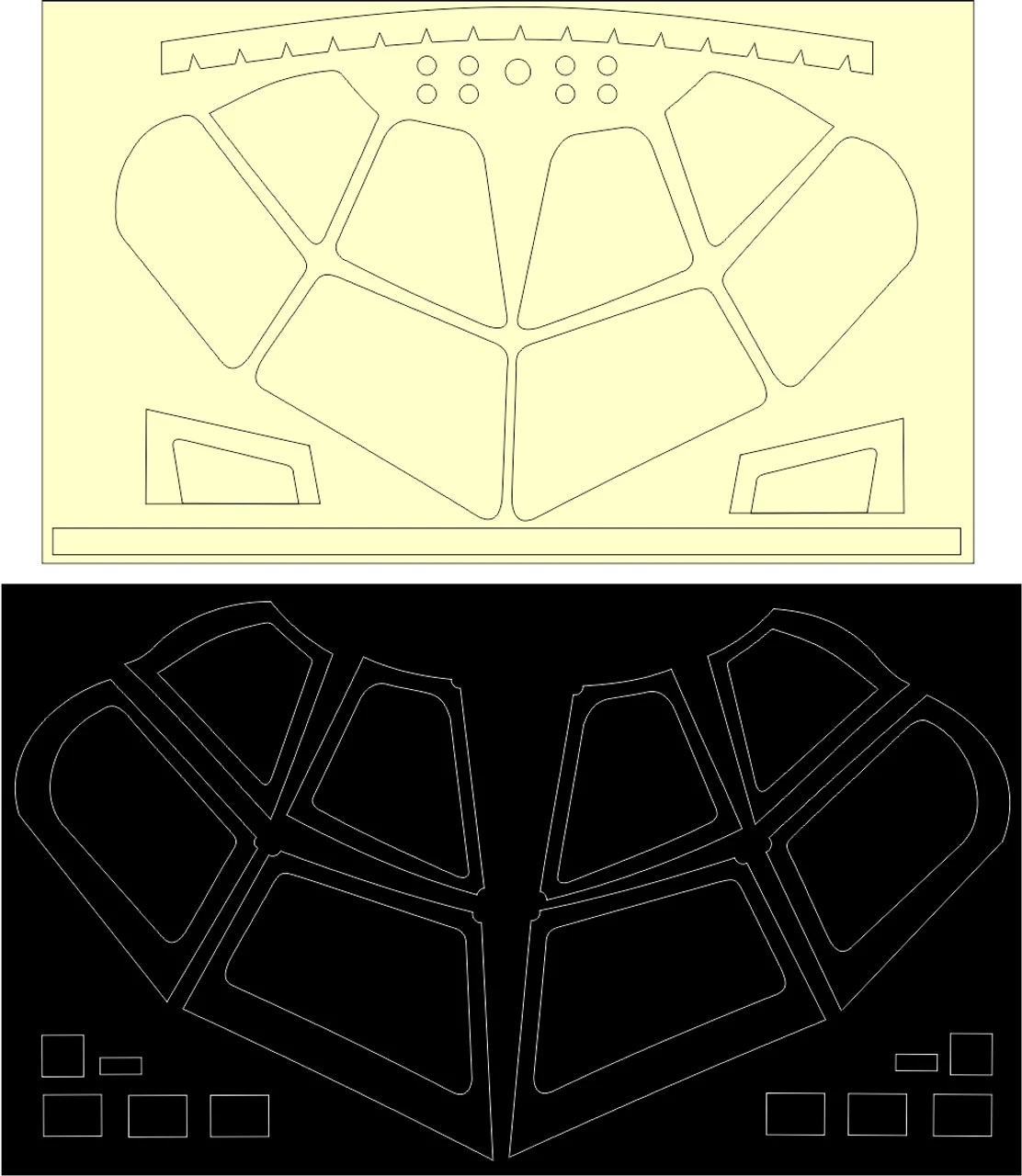 Paint masks for the Proteus kit from Moebius Models. This set includes masks for the windows, the dome, and other details.