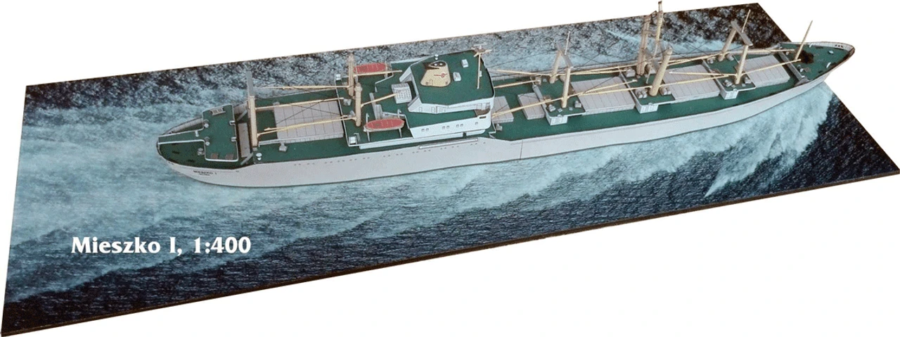 Images show Revell 1:570 scale Tirpitz kit, waterlined Revell 1:144 UBoat and 1:400 Mieszko I on base as example applications.