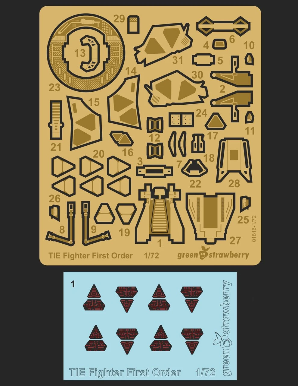 Photo etch detail set for First Order TIE Fighter the Star Wars The Force Awakens from Bandai model kit in 1/72 scale.