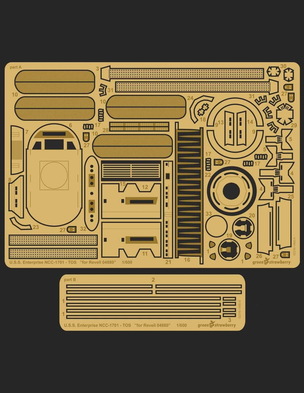 Photo etch detail set for the original series U.S.S Enterprise NCC-1701 from Revell model kit in 1/600 scale.