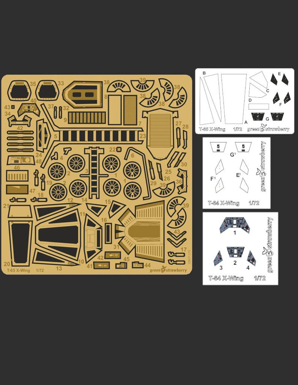 Photo etch detail set for T-65B X-Wing from the original Star Wars trilogy and Star Wars story: Rogue One from Bandai model kit in 1/72 scale.