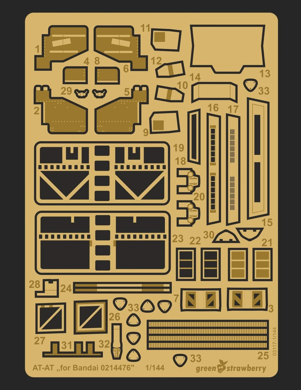 Photo etch detail set and correction set for AT-AT walker from Bandai in 1/144 scale.