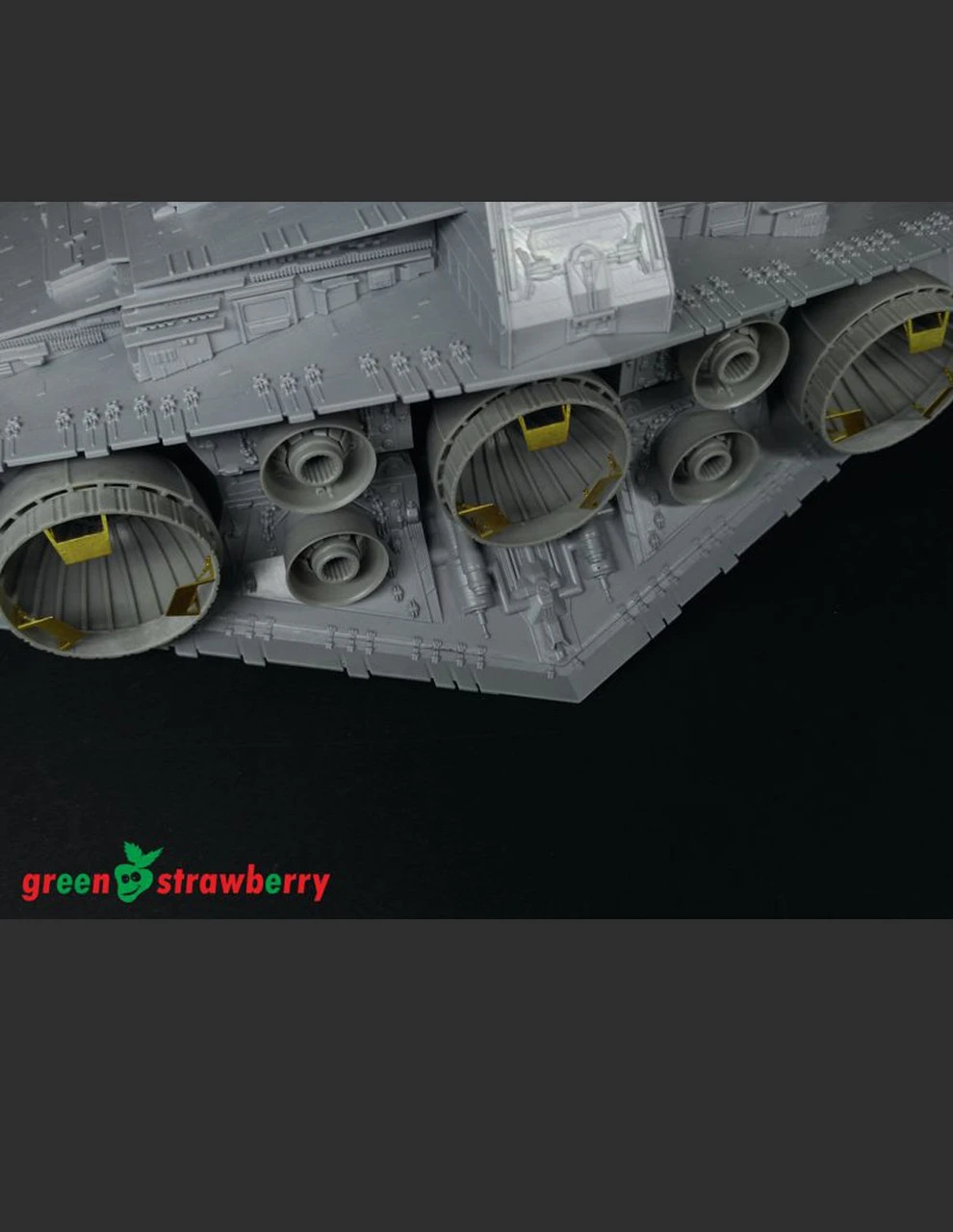 Photo etch and resin detail set for Imperial Star Destroyer – Engines Bells from the original Star Wars trilogy and Star Wars story: Rogue One for Zvezda / Revell model kit in 1/2700 scale.