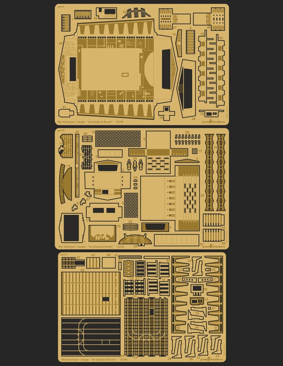 Photo etch  detail set for Imperial Star Destroyer – Hangar Bay from the original Star Wars trilogy and Star Wars story: Rogue One for Zvezda / Revell model kit in 1/2700 scale.