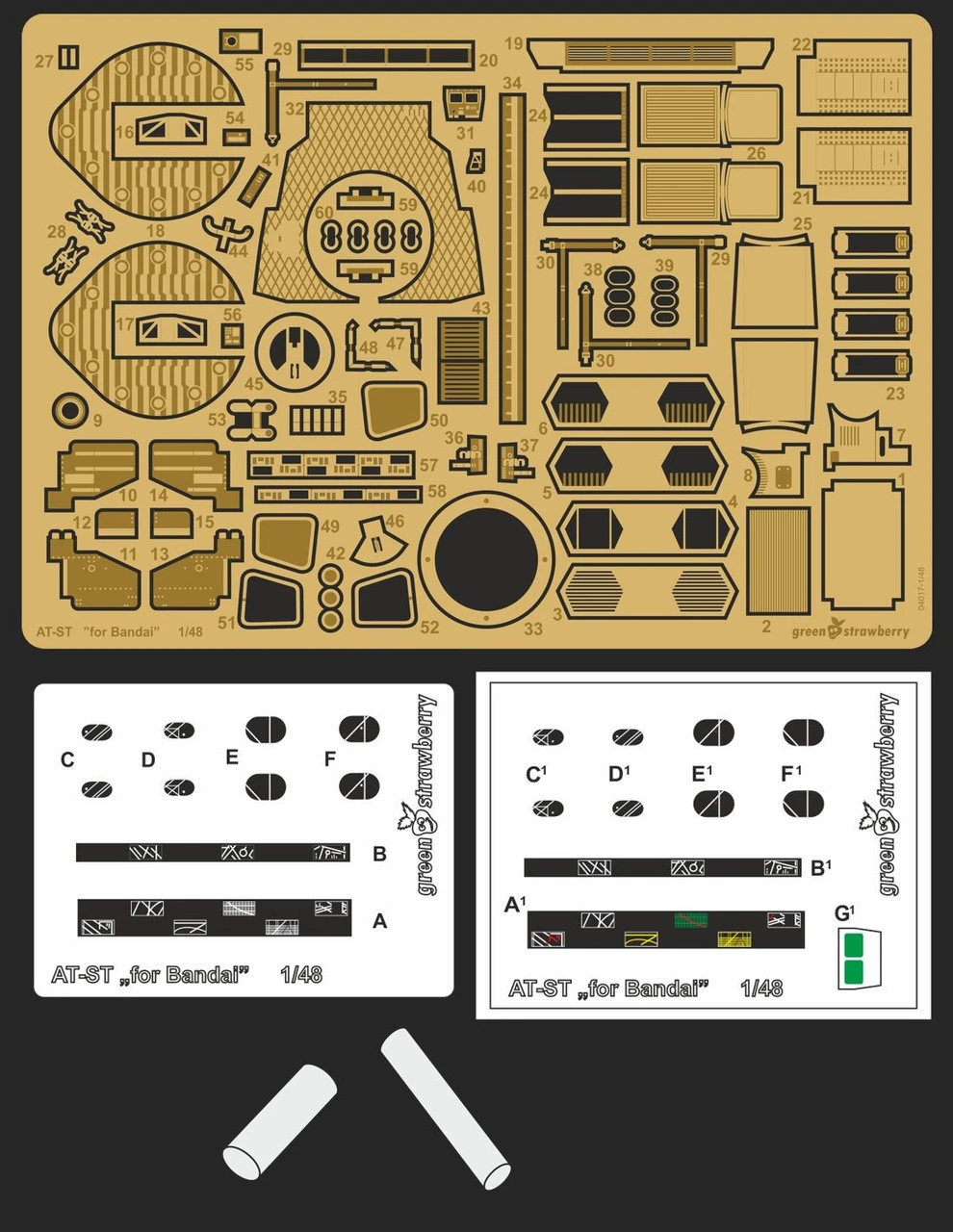 Photo etch detail set and correction set for AT-ST walker from Bandai in 1/48 scale. All Terrain Armored Transport from movie Star Wars The Empire Strikes Back and Star Wars Return of the Jedi.