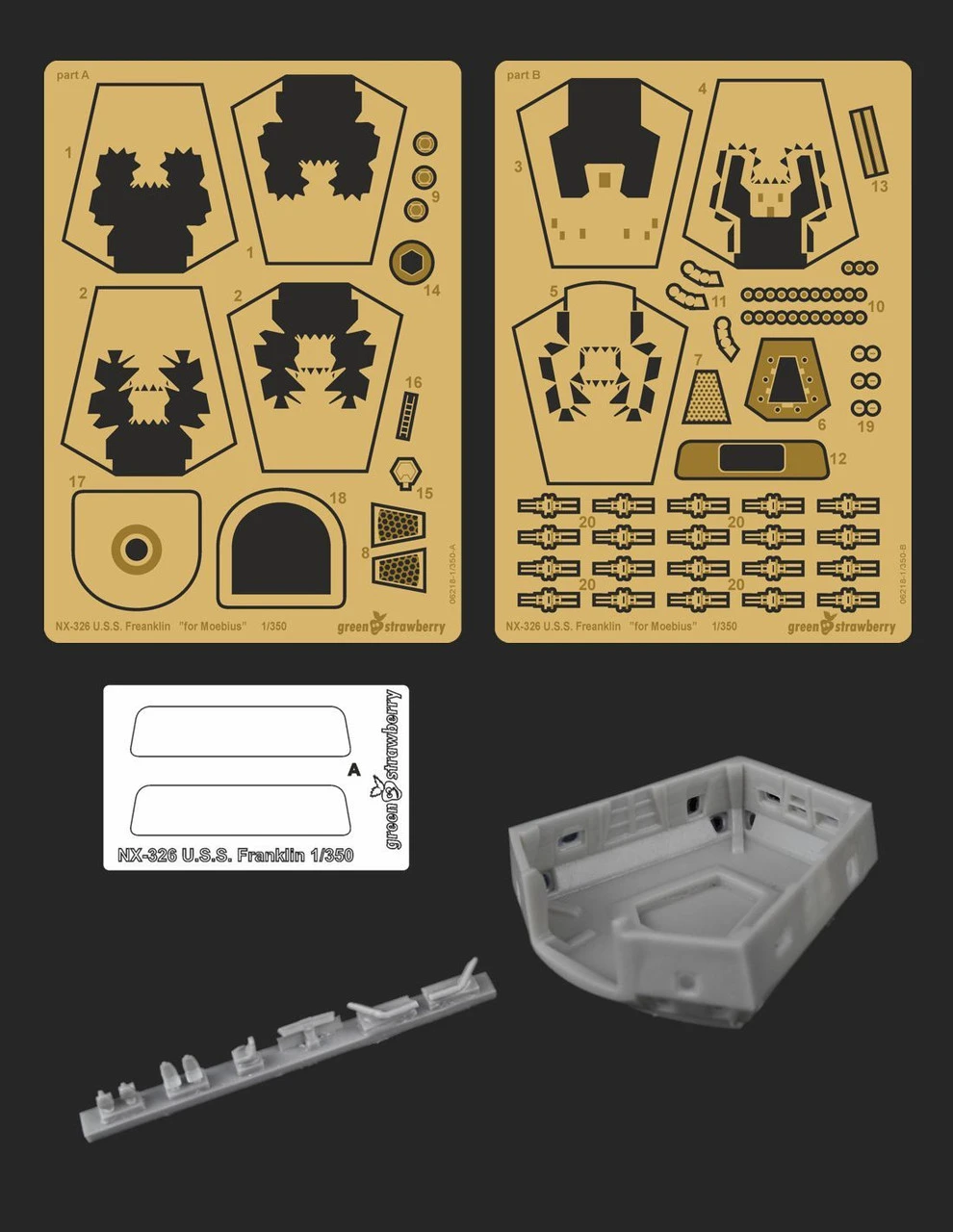 Photo etch and resin parts detail set for U.S.S. Franklin for Moebius model scale 1/350 from STAR TREK – beyond movie.