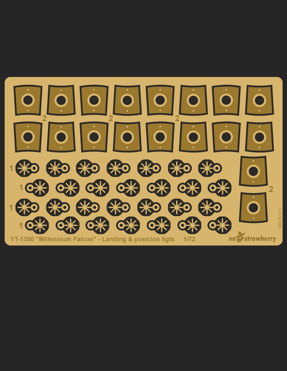 Universal photo etch detail set for Millennium Falcon from the original Star Wars trilogy series for Bandai PERFECT GRADE model kit or Finemolds / Revell in 1/72 scale.
