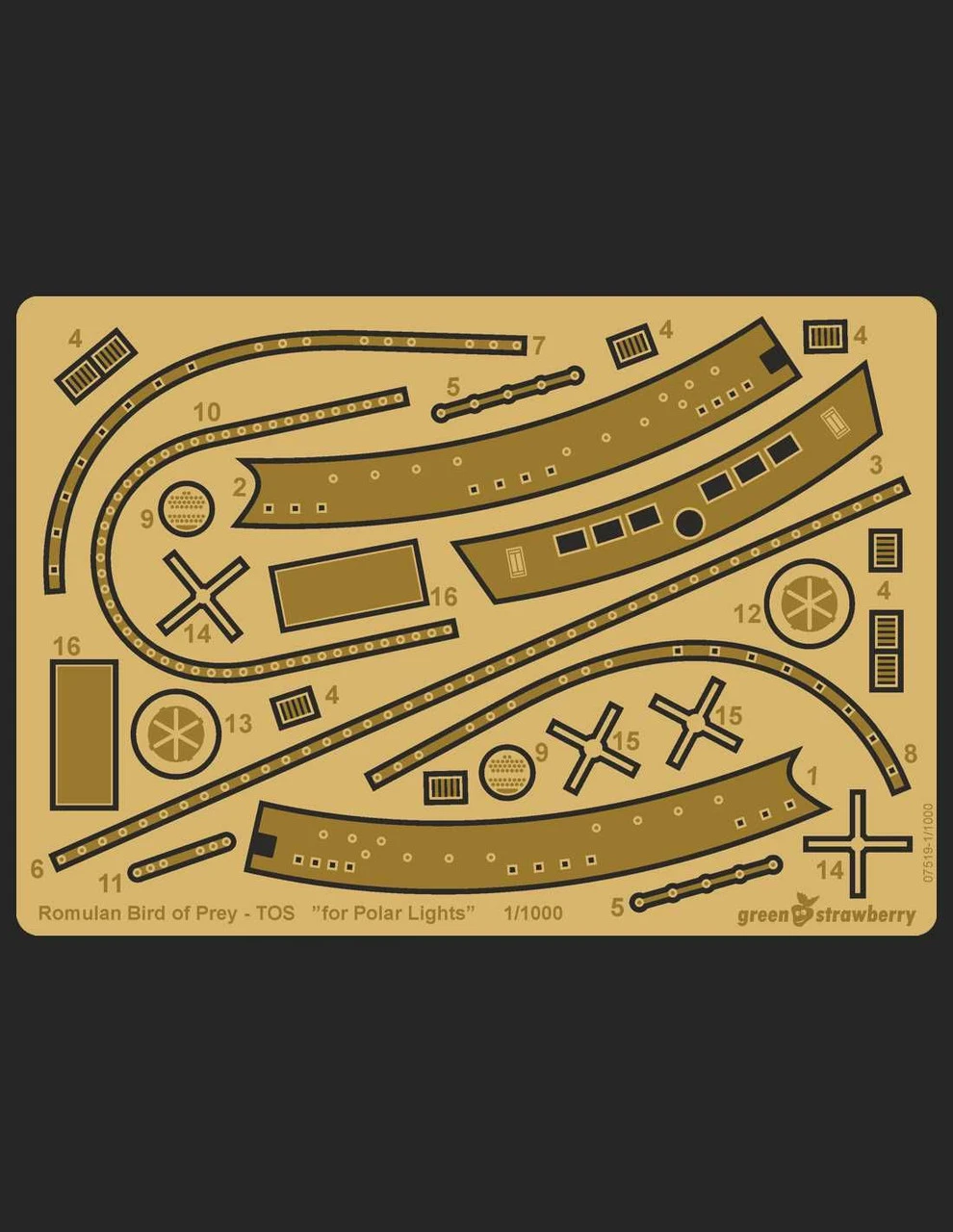 Photo etch detail set for Romulan Bird of prey from Polar Lights model in 1/1000 scale.