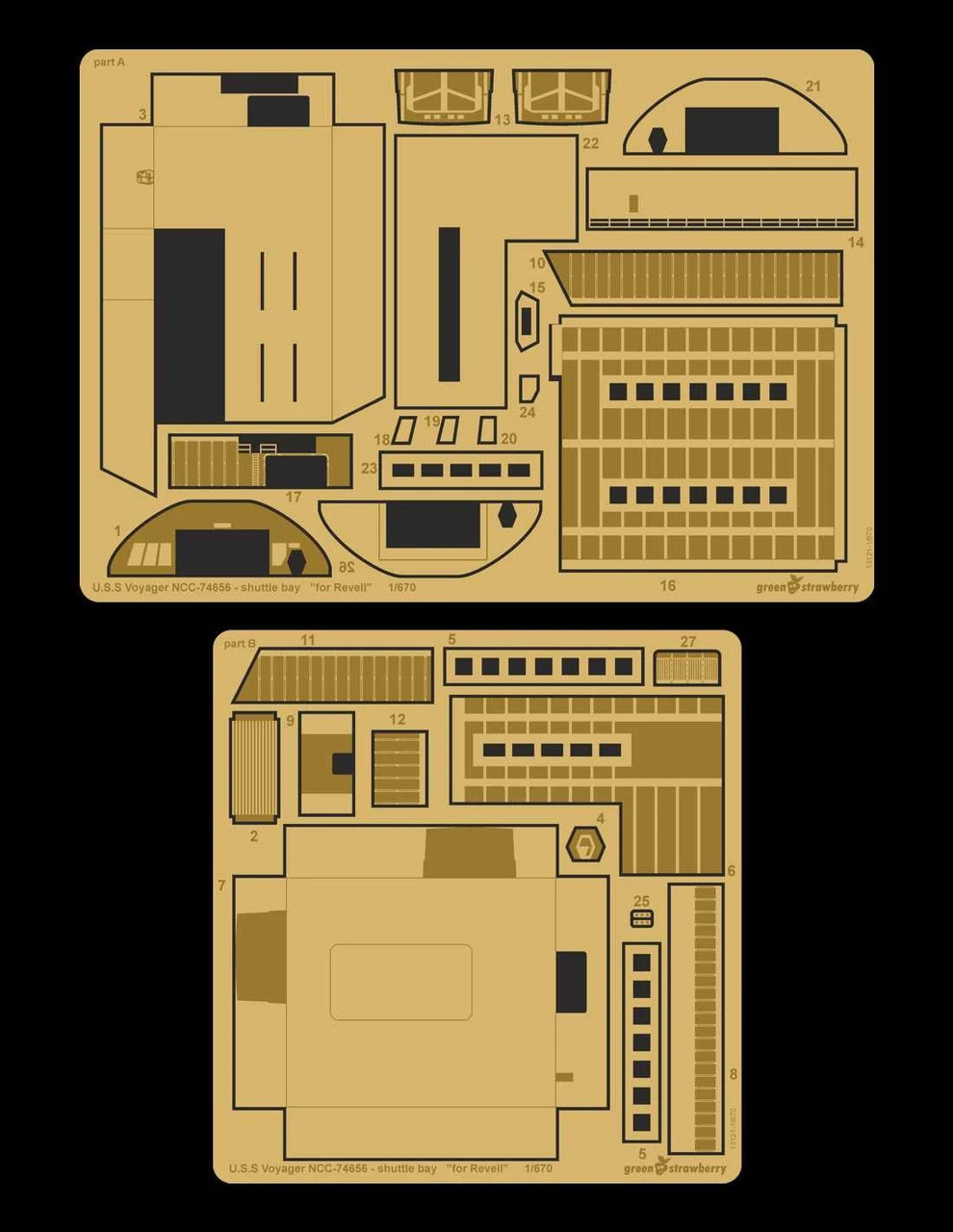 Photo etch Hangar bay for Intrepid class star ship of U.S.S. Voyager NCC-74656 for Revell kit from STAR TREK Voyager TV show