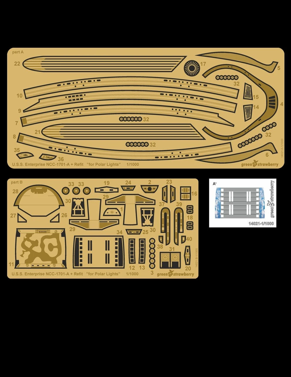 Photo etch detail set for refit U.S.S Enterprise NCC-1701 Polar Lights model kit in 1/1000 scale