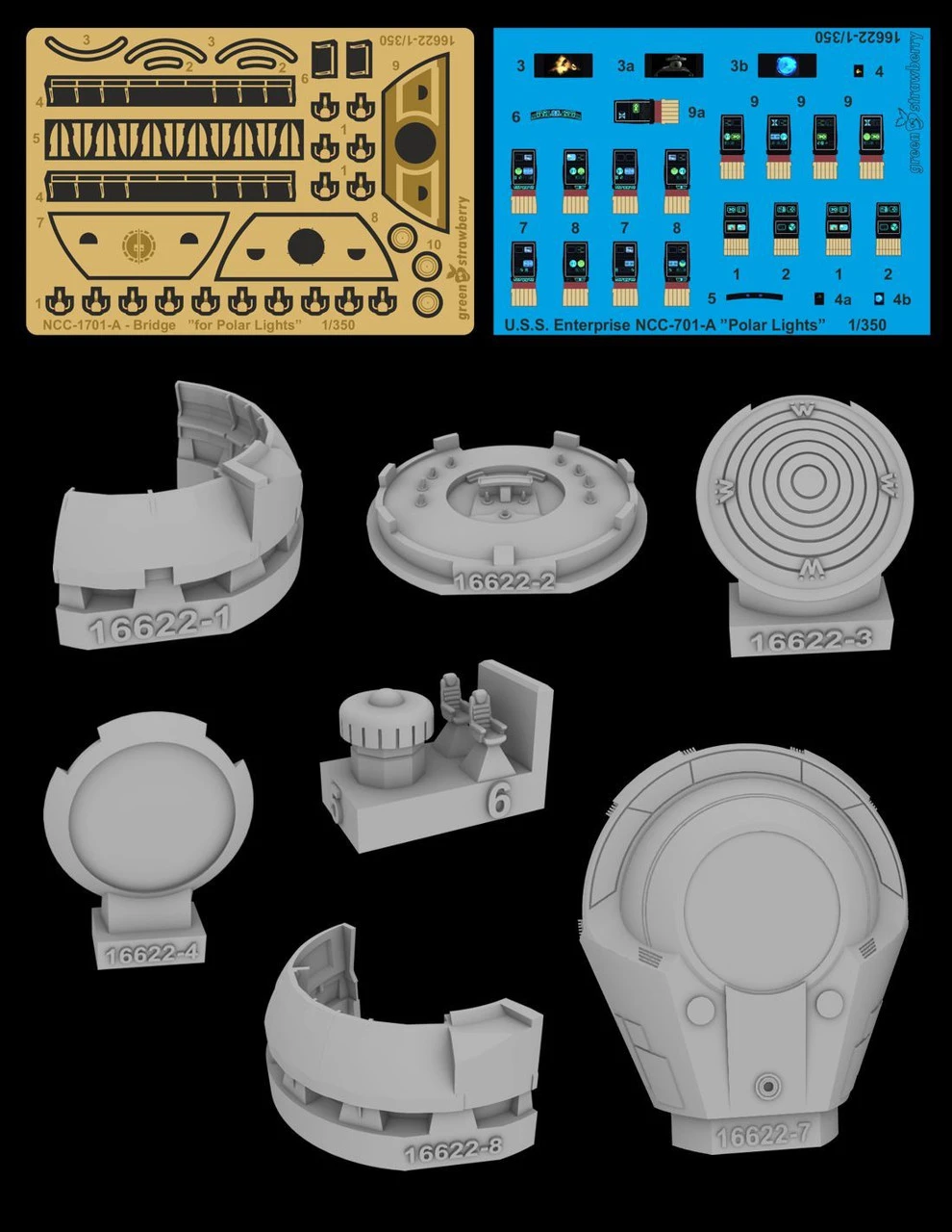 Resin detail set with photo etch and decals of main bridge for U.S.S. Enterprise / Constitution class NCC-1701-A star ship including interior in scale 1/350 for Polar Lights kit