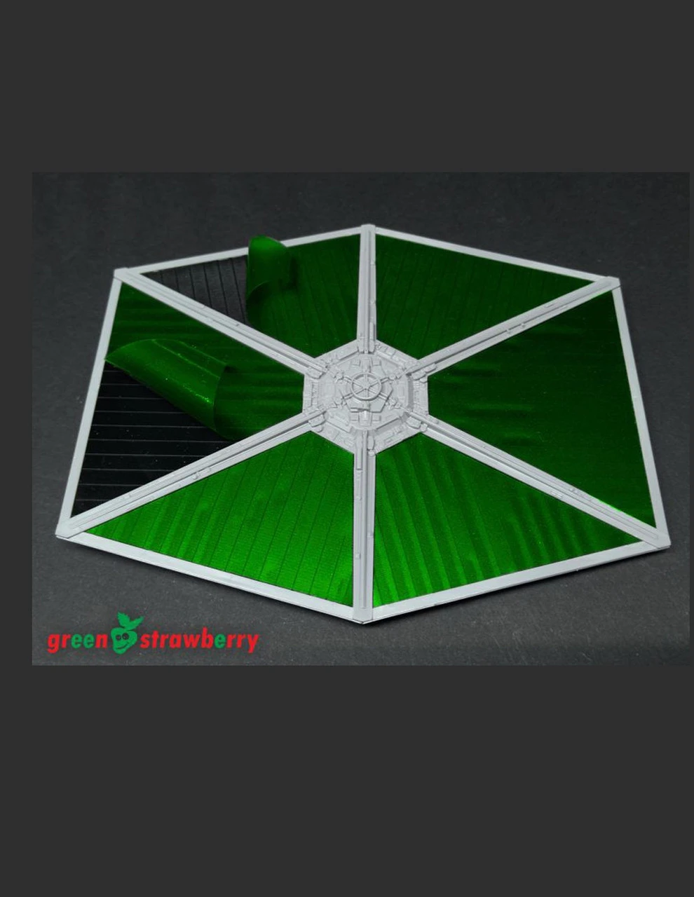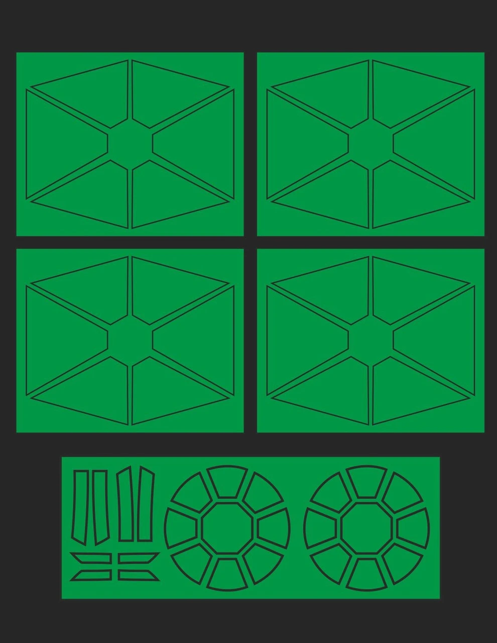 Painting masks for TIE Fighter – MASK from the original Star Wars trilogy series. Green vinyl airbrush masks are precisely cut for perfect canopy windows and wheels cover in 1/72 scale for Bandai model