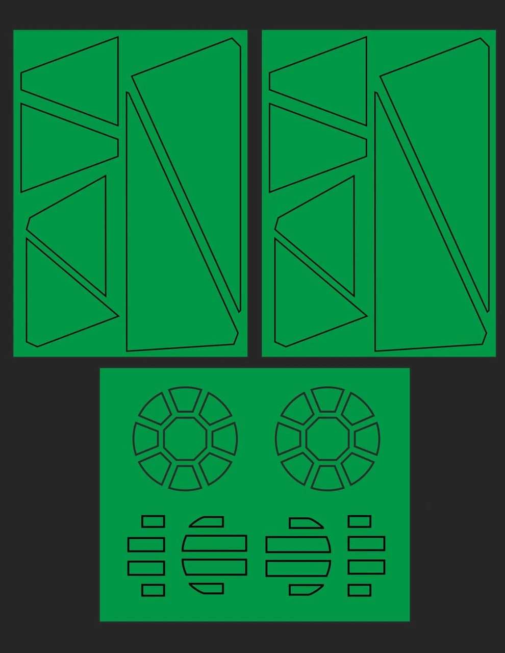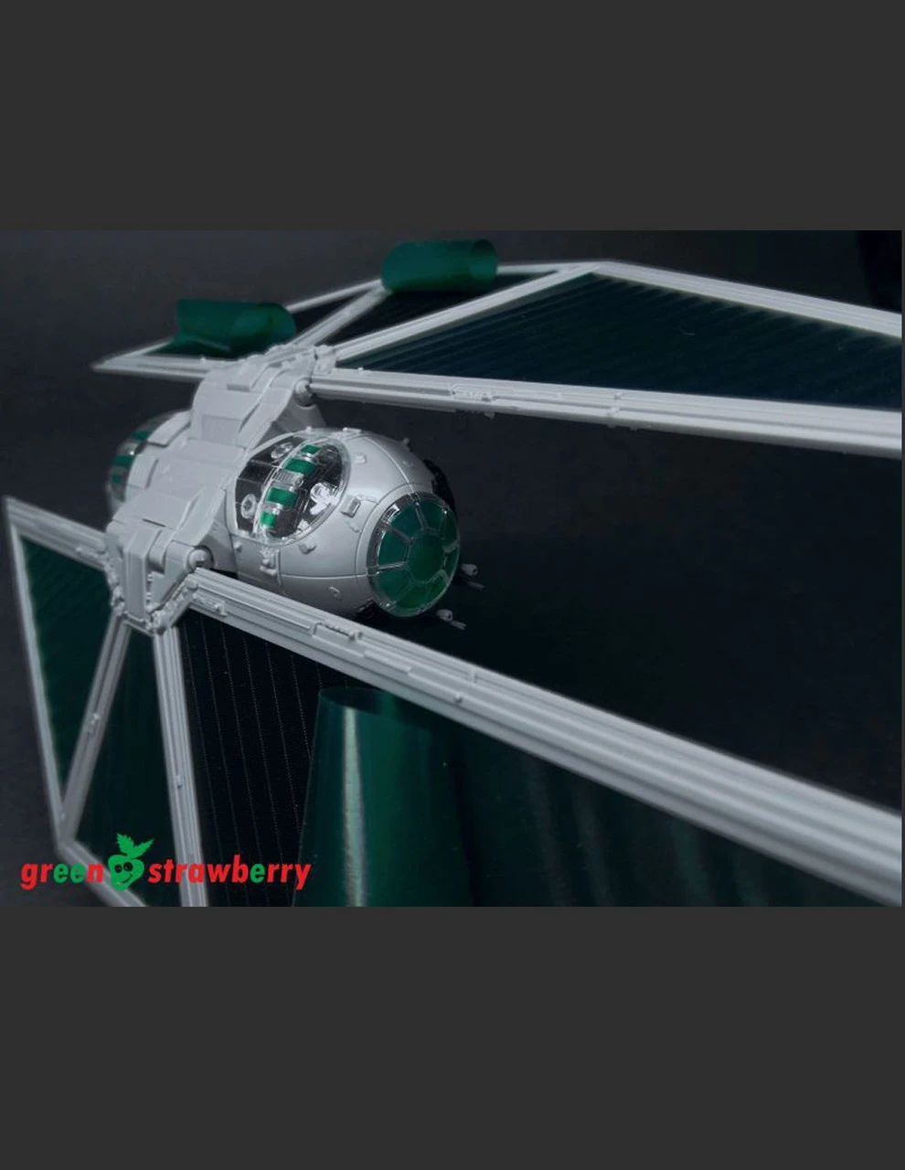 Painting masks for TIE Striker from the original Star Wars story: Rogue One. Green vinyl airbrush masks are precisely cut for perfect canopy windows and wheels cover in 1/72 scale for Bandai model