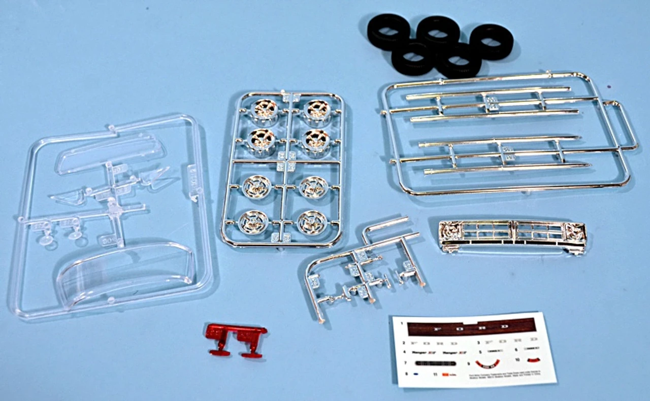 Completed kit measures over 8″ long, and includes clear and chrome-plated parts, sot PVC tires, detailed instructions and decal sheet.
