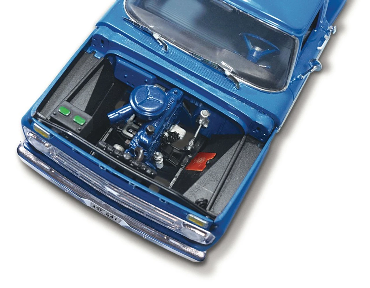 It features a fully detailed interior (with seats, door linings and floorboards), accurate 240 CID six-cylinder engine (the hood opens and closes so you can admire it), and a detailed chassis.