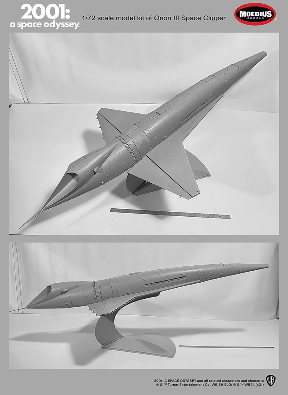Released in 1968, “2001: A Space Odyssey” is widely regarded as a masterpiece by many science fiction fans. Moebius brings us a model kit of the Space Clipper spaceship seen in the film, from the memorable scenes where this passenger liner of the future gracefully traveled through space to the strains of “The Blue Danube” toward the space station. It was imagined in the film as a “space plane” to connect the Earth and the space station in orbit; it had a passenger capacity of 20 people, a pilot and a cabin attendant.