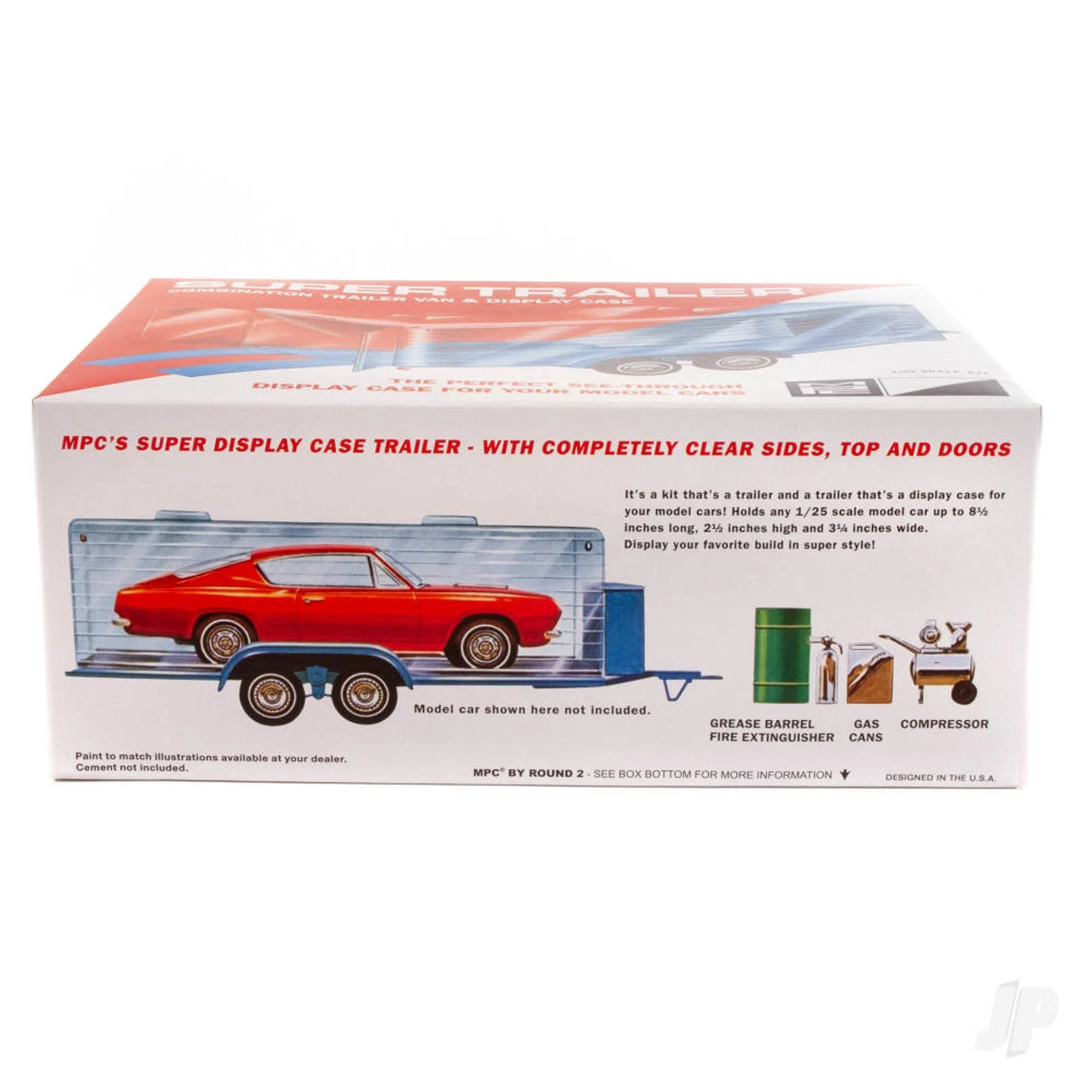 It’s a kit that’s a trailer and a trailer that’s a display case for your model cars! Holds any 1/25 scale model car up to 8-1/2 inches long, 2-1/2 inches high and 3-1/4 inches wide. Display your favorite build in super style!