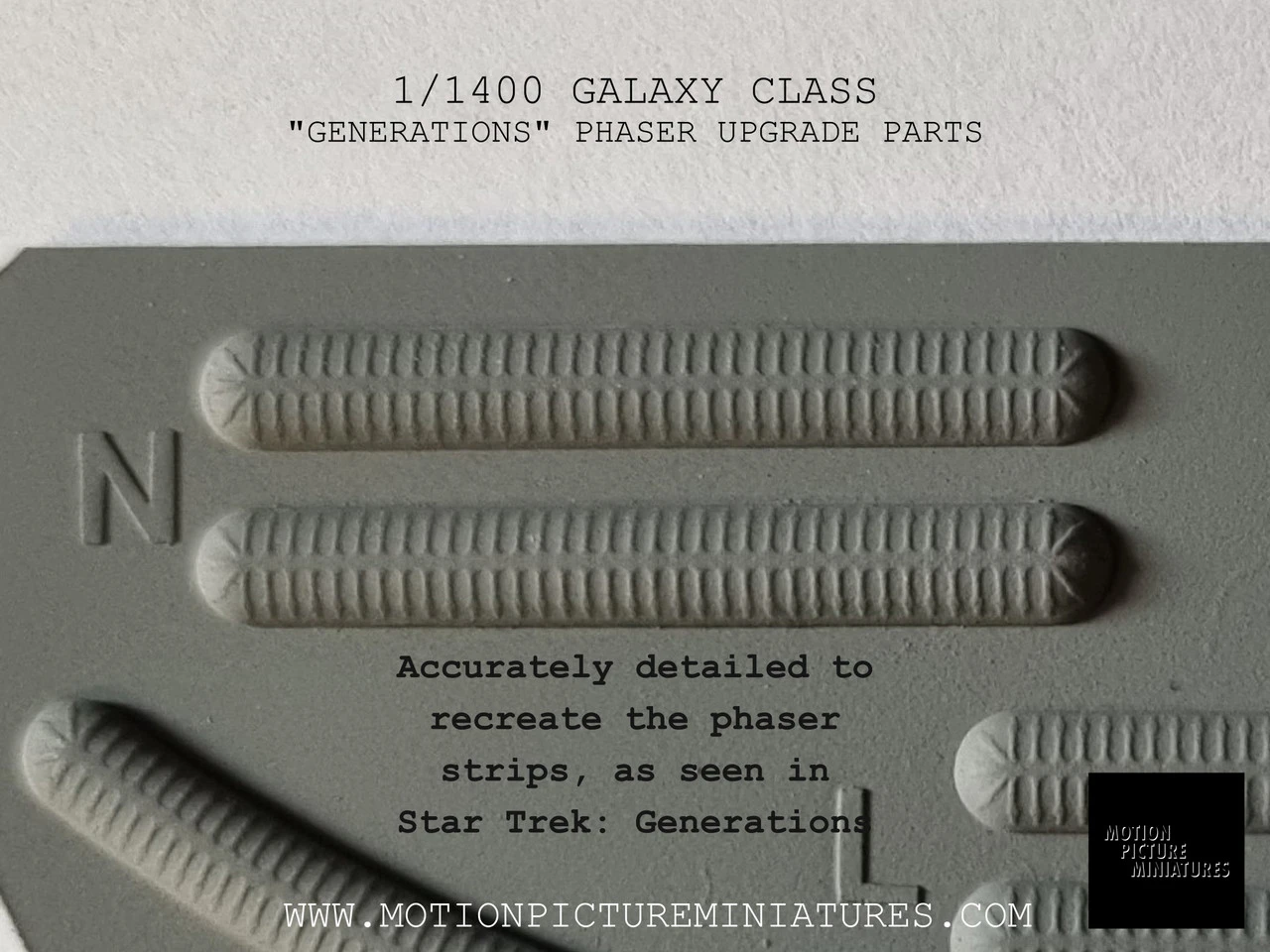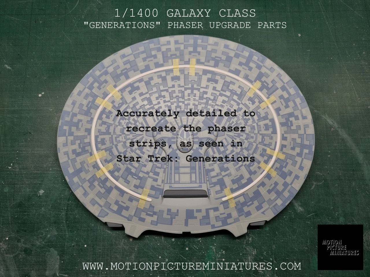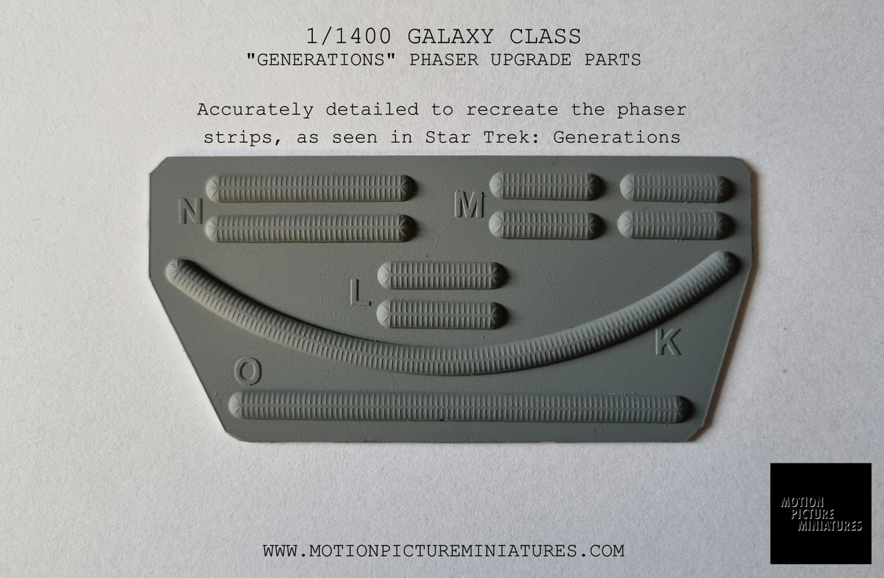 These parts are designed to be used with AMT/Round2’s 1/1400 scale Enterprise D kit, to bring the model closer to the original 6′ filming miniature as it was seen in the TV series and the movie “Star Trek: Generations”.