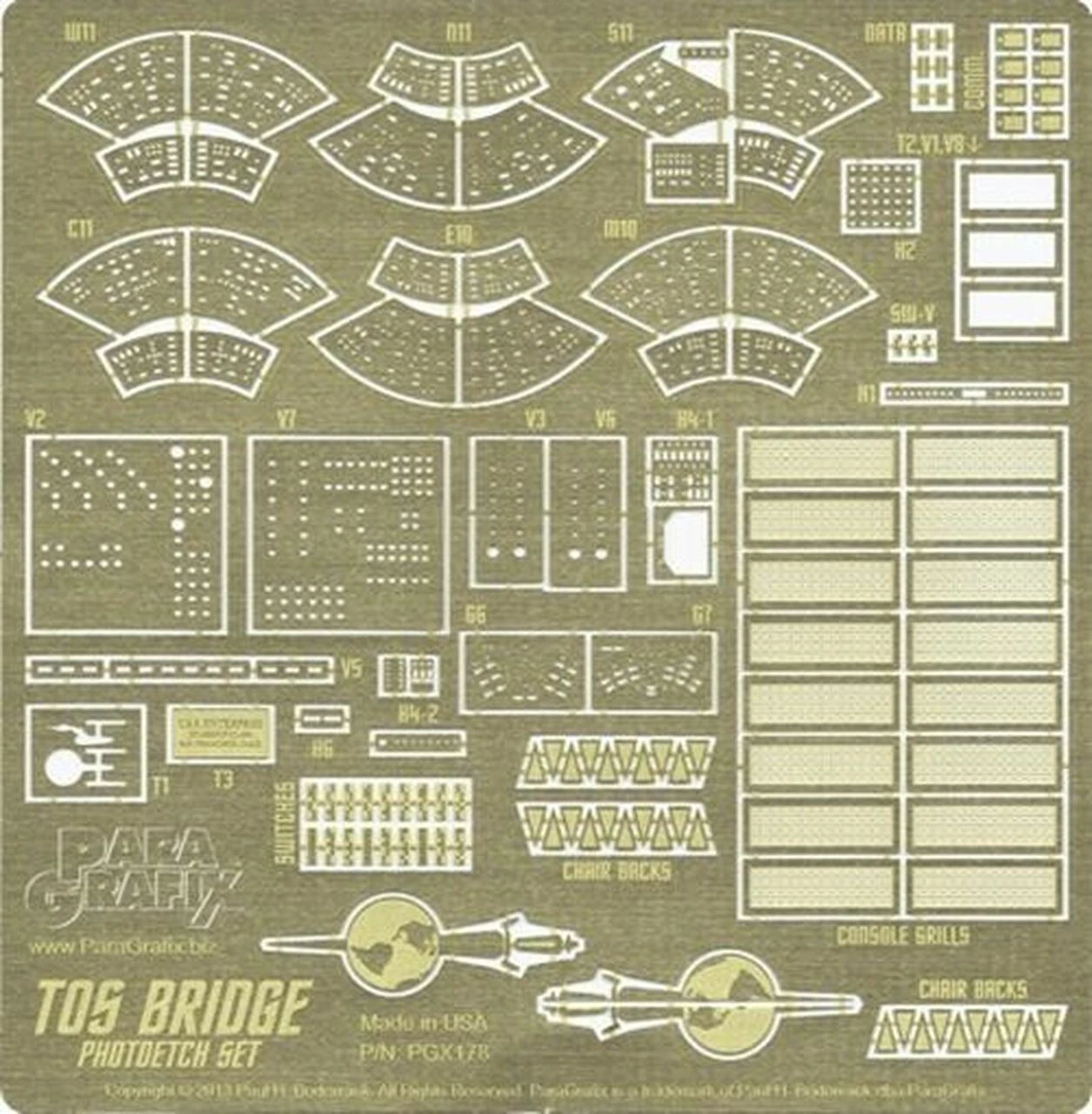 Add extra detail to AMT’s classic USS Enterprise bridge kit. Specially designed to work with the newly released full bridge, and the impeccable decals designed by TOS Graphics.