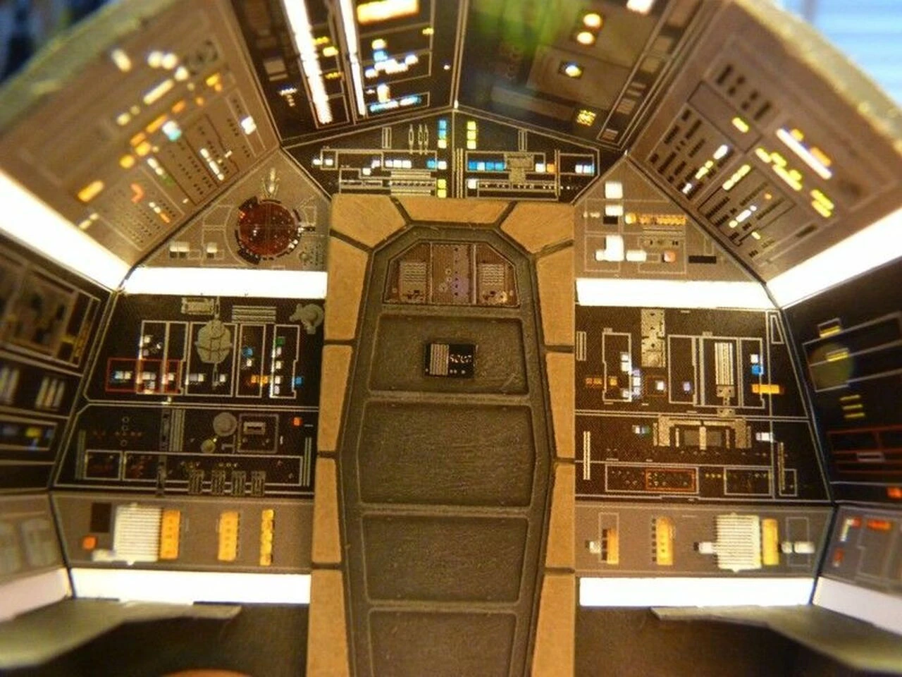 Enhance and correct the detail of the DeAgostini Millennium Falcon’s cockpit.