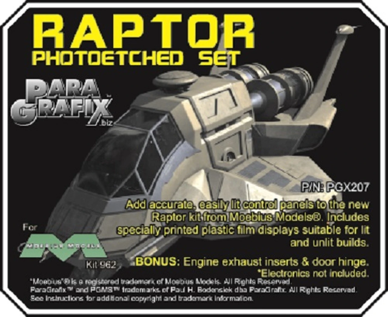 Add easily lightable* control panels and engines to Moebius Models’ new Raptor kit from Battlestar Galactica.