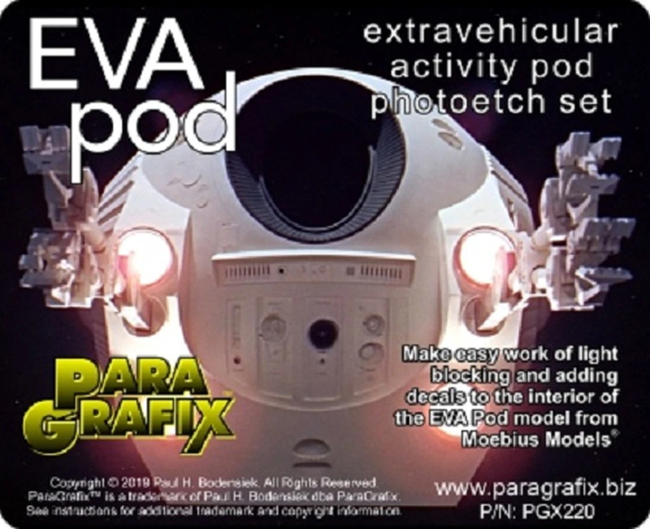 Make lighting* and decaling the interior of Moebius Models’ new EVA Pod a breeze with this new photoetch set.