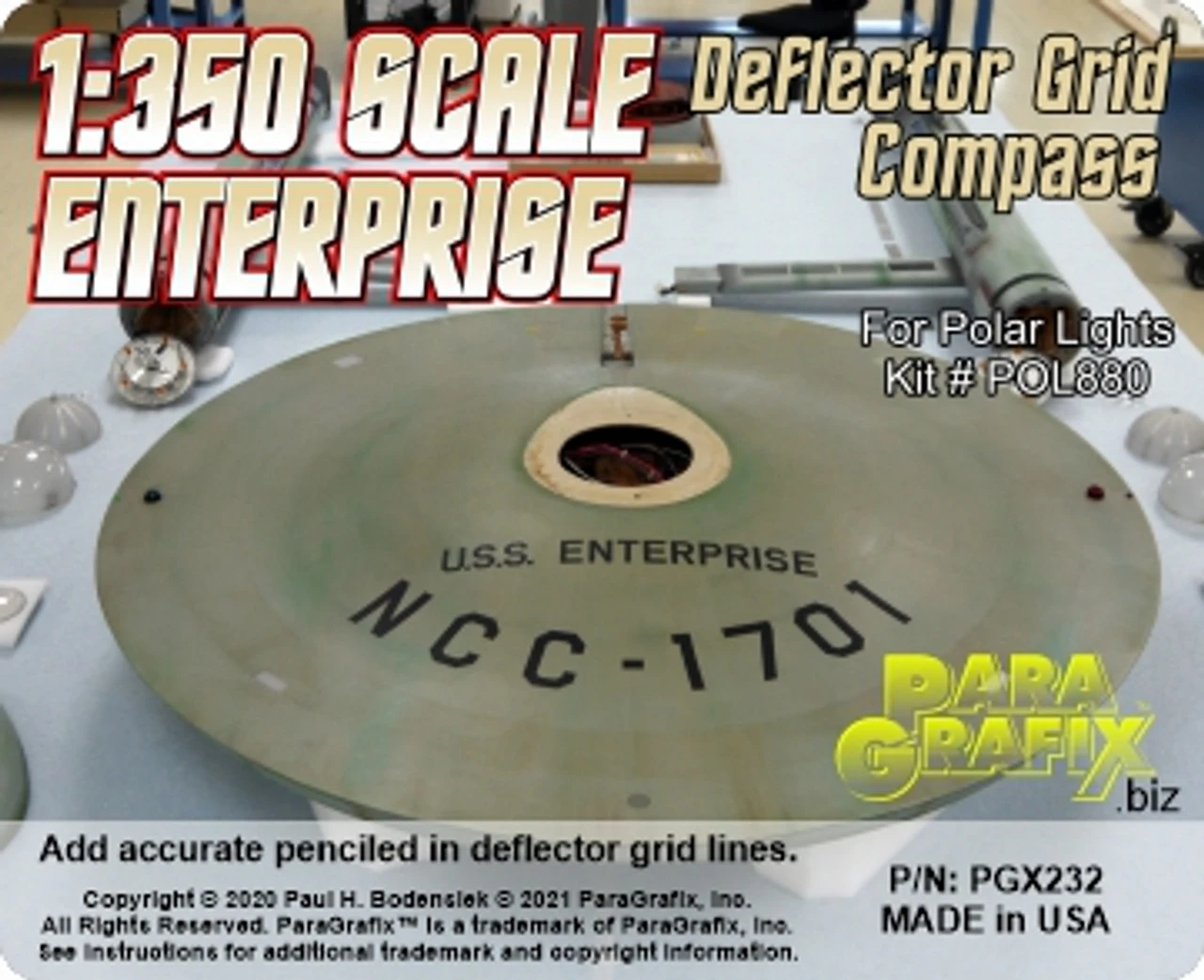 Polar Lights’ retooled smooth primary hull for their 1/350 scale Original Series U.S.S. Enterprise is far more accurate than the one with engraved panel lines. It does, however, present a challenge for modelers: how to get the panel lines (AKA deflector grid lines) drawn onto the hull like they are on the filming miniature.