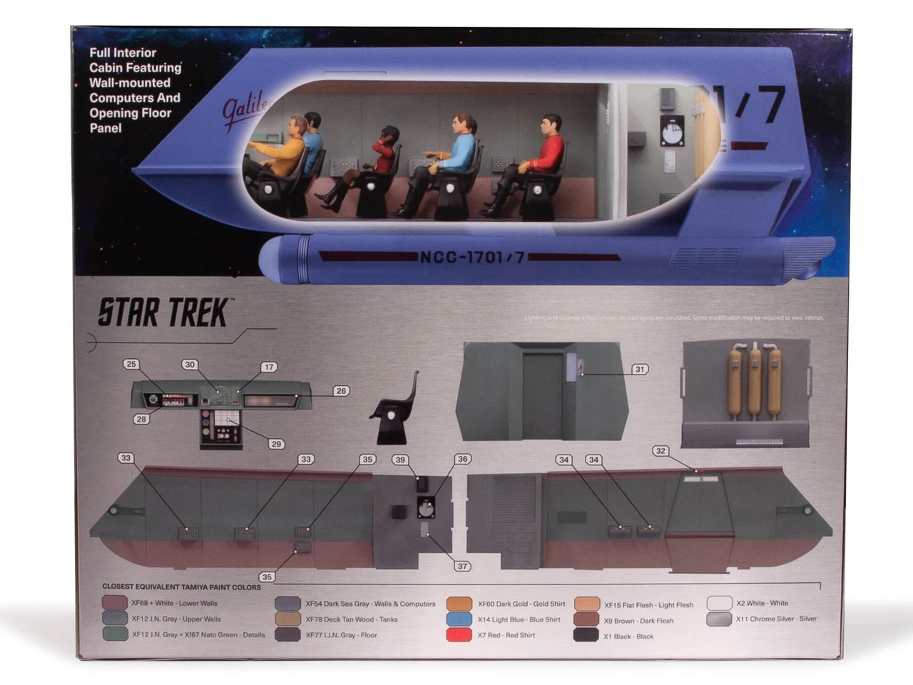 - GET INSIDE: This release includes all-new parts for the Galileo Shuttle interior. It includes everything from the command console to the utility room along with seven crew figures featuring the main cast of characters.