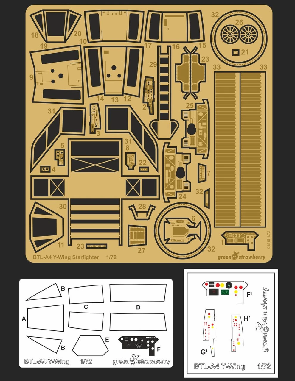 Photo etch detail set for Y-Wing from the original Star Wars trilogy series from Bandai model kit in 1/72 scale.