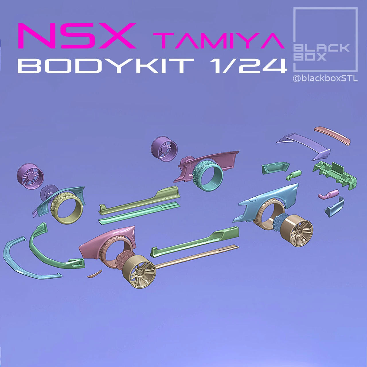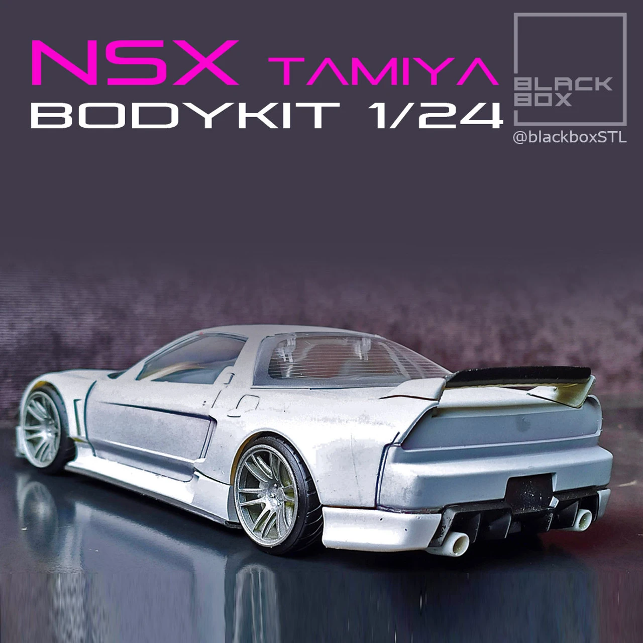 Whilst designed for the Tamiya NSX, this kit may work on other 1/24 model kits with some modification