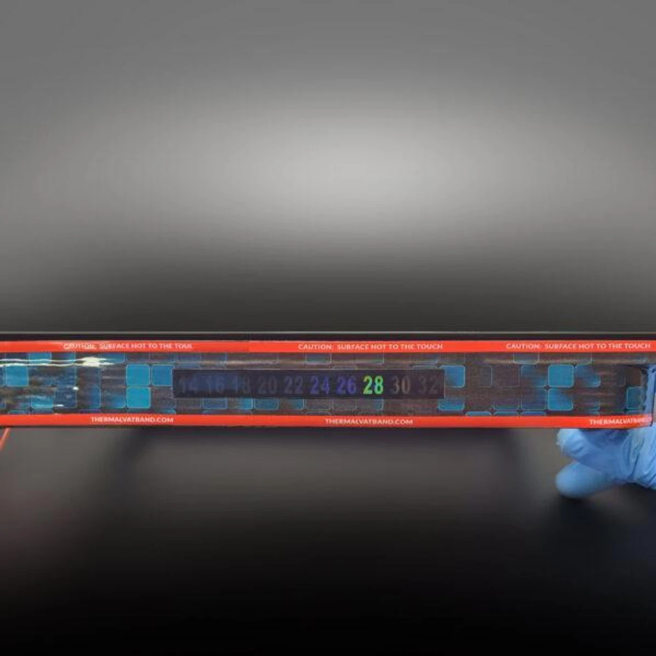 – The thermostat reading is from the direct heat of the VATBAND, and the resin will be 5 degrees less. When you see the thermostat go black, the temperature cycling process is rapid, and the thermostat will have a slight delay in reading. Rest assured that your ideal temperature range is cycling, which will prevent FEP from shrinking.