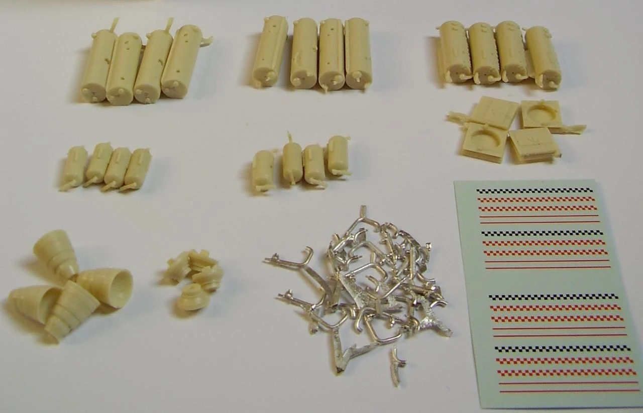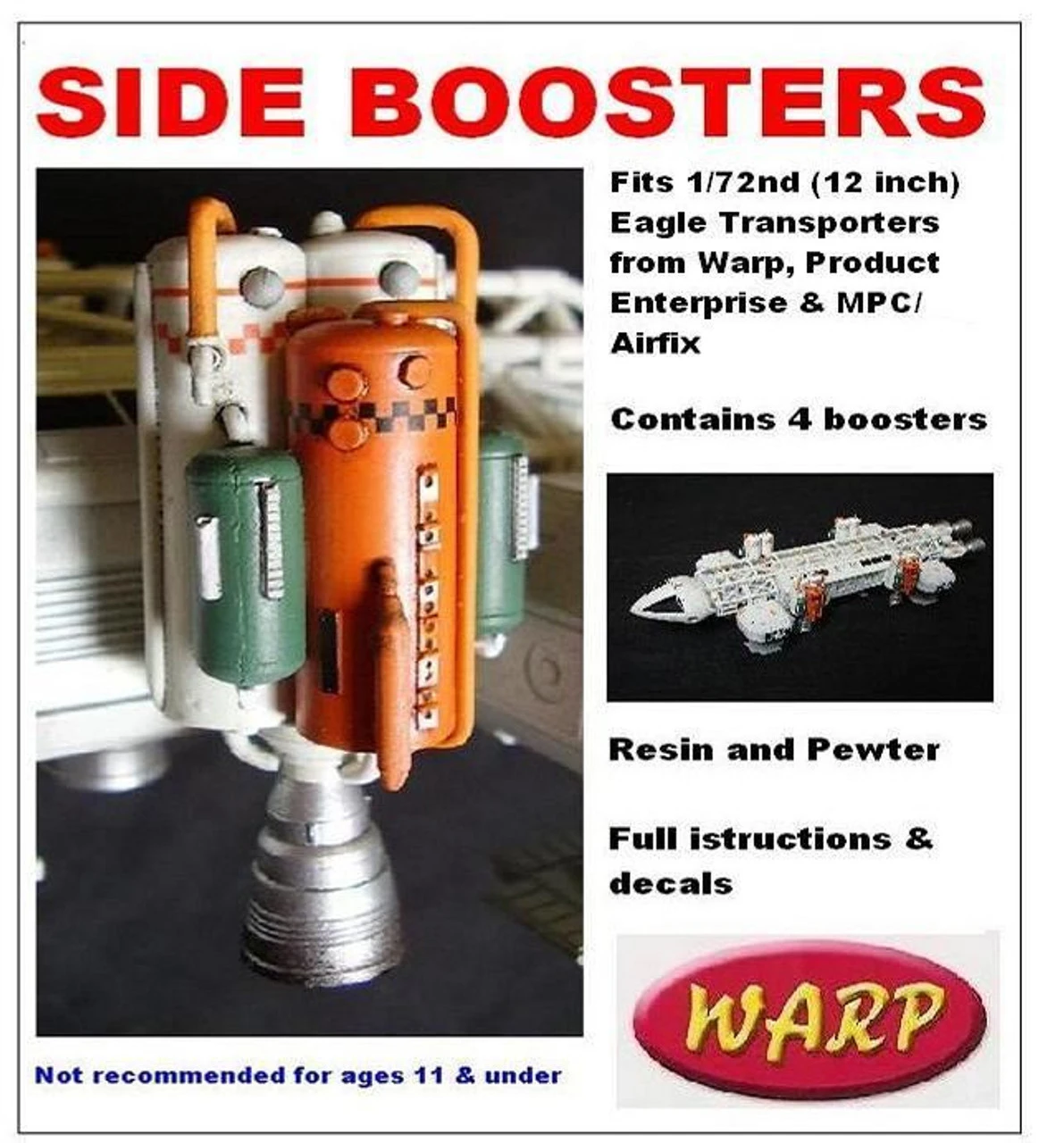 Resin and White metal side boosters, 4 boosters, to suit Product enterprise/16-Twelve, Warp and MPC 11 inch eagle Transporters. Includes decals.